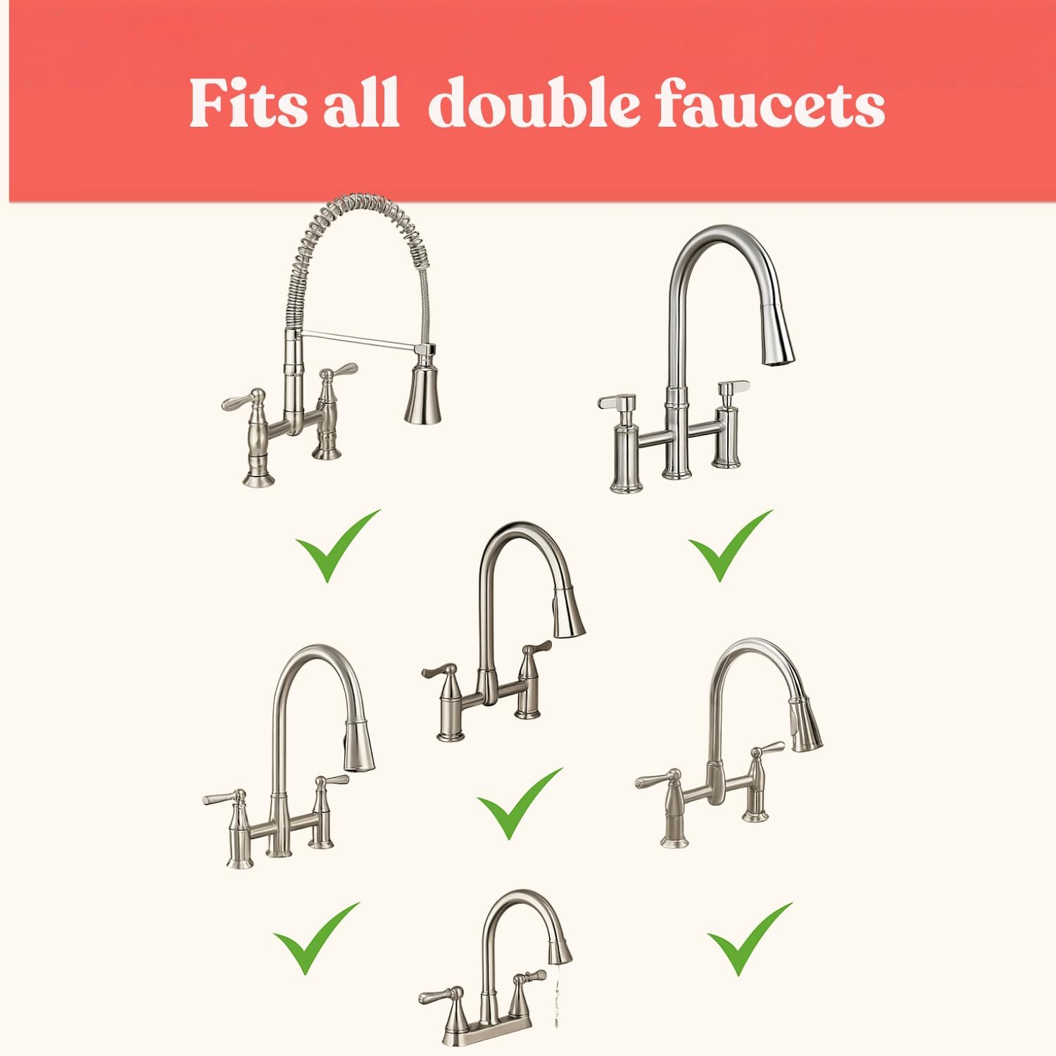 - FITS ALL STANDARD DOUBLE FAUCET SINKS (8" SPACING): This double faucet splash guard fits all standard 2-hole faucets with 8-inch spacing. The two 2.63" holes fit around most double-handle faucets, no cutting or measuring needed.