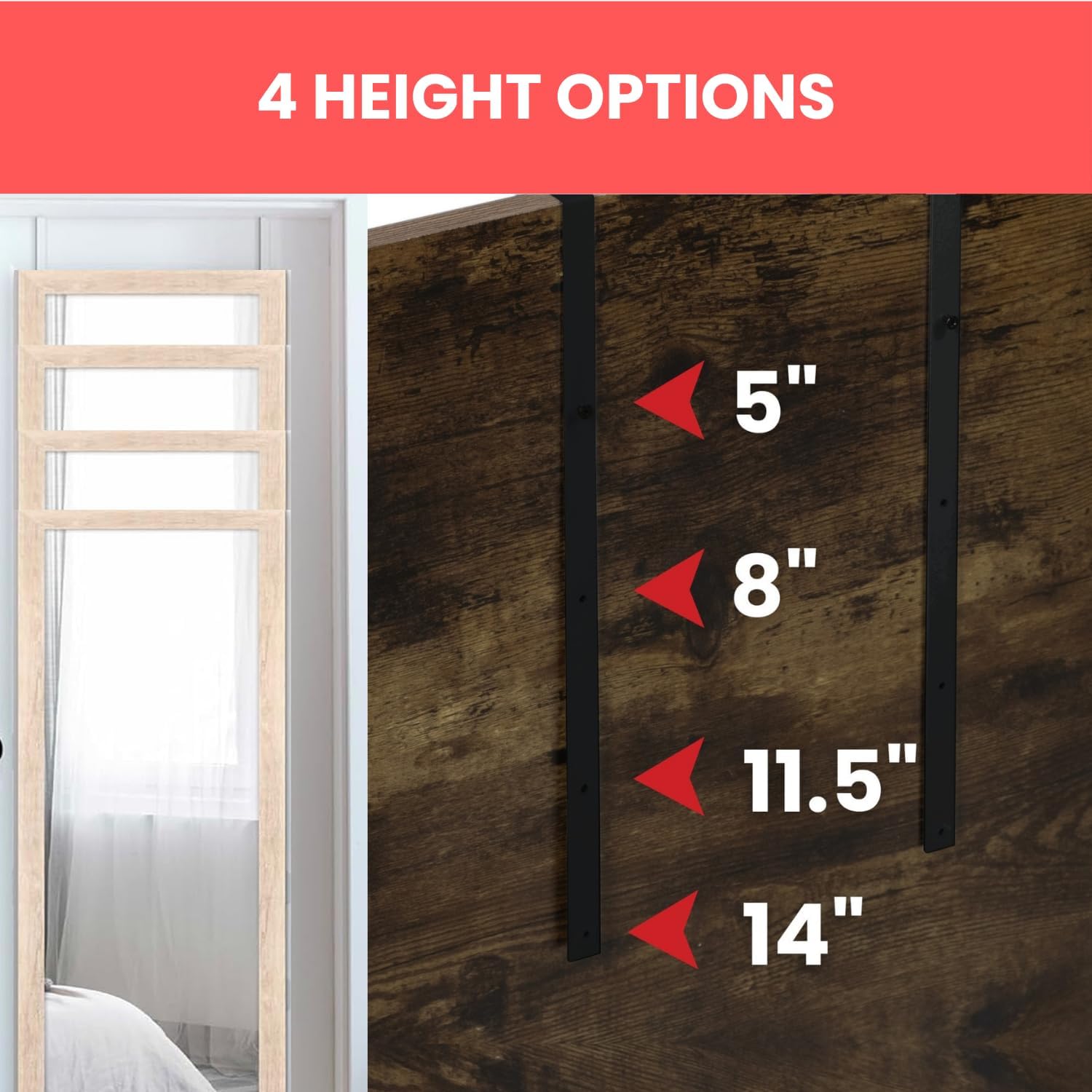 - Explore the TikTok sensation with our Over-the-Door Mirror Hooks Solution: Impeccable mirror alignment and adjustable hanging height await with our 14.5-inch over door mirror hanger, compatible with most doors. Hooks feature a depth of 1.5 inches.