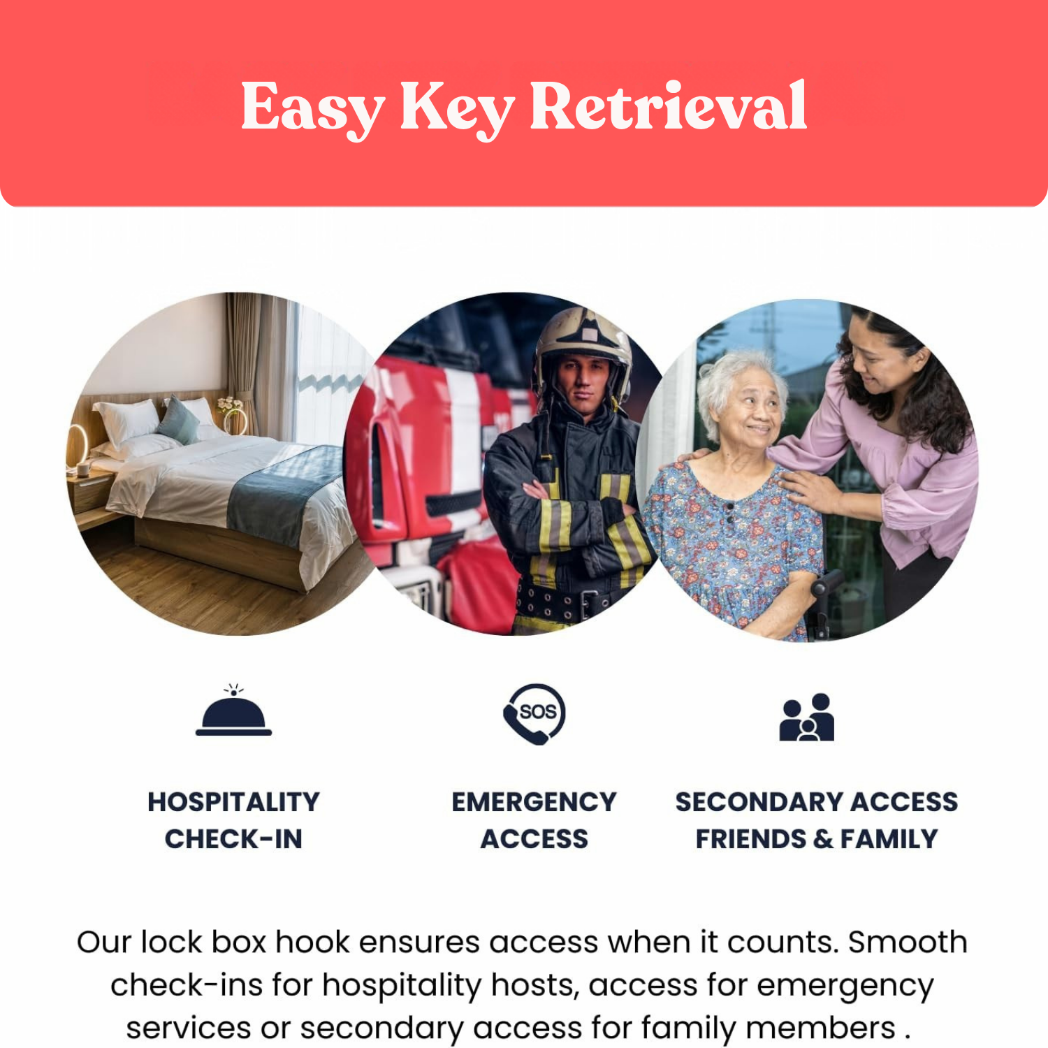 - Emergency Ready Solution: What if the person inside the house has limited mobility and emergency services need to access the house but have no key? What if you have no place to hang a key lockbox? This lockbox bracket is designed for emergency access. This heavy duty, durable lock box door mount offers quick and secure entry during urgent situations.