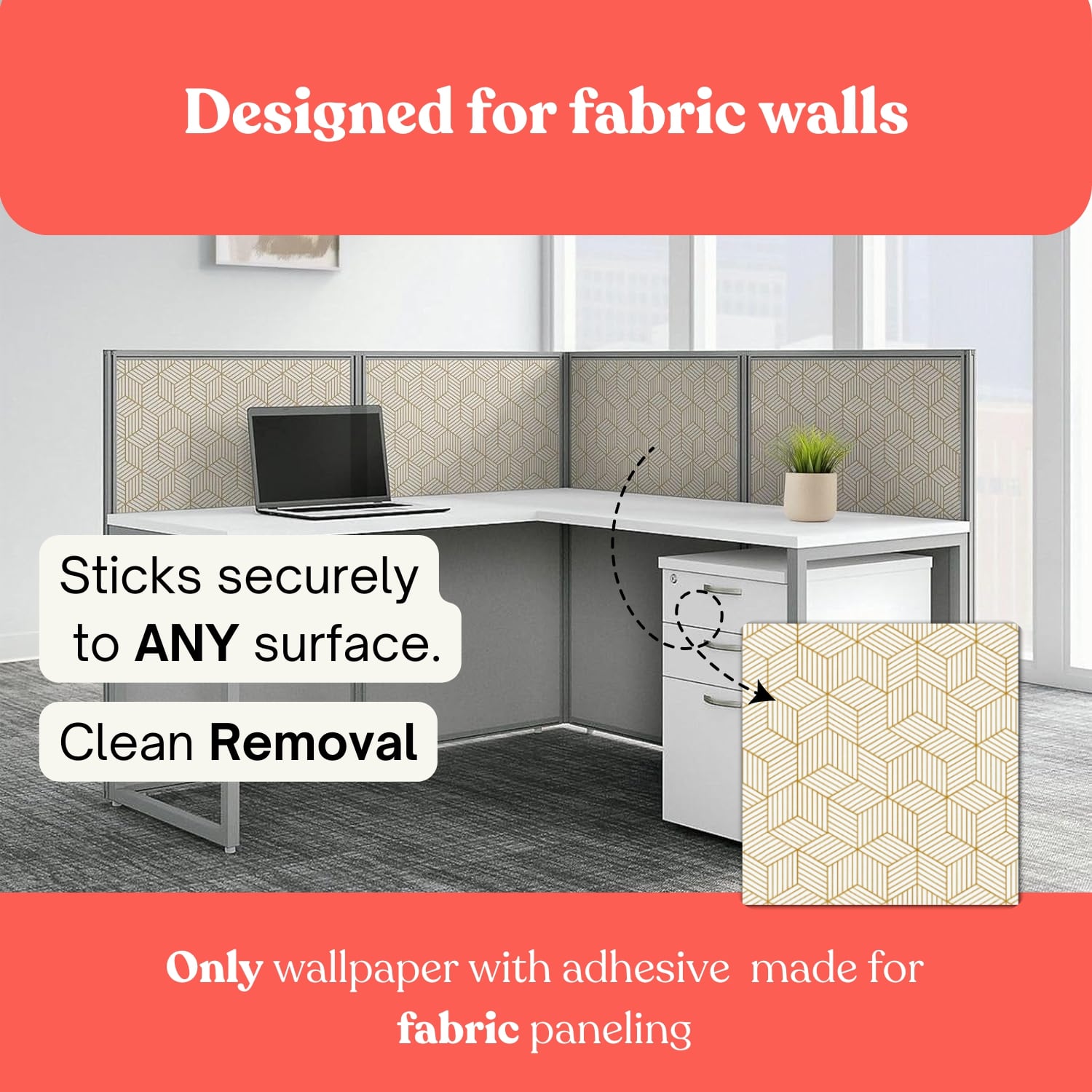 Gold & White Geometric Peel & Stick Wallpaper for Fabric Panels - Office Cubicle Wall Decor