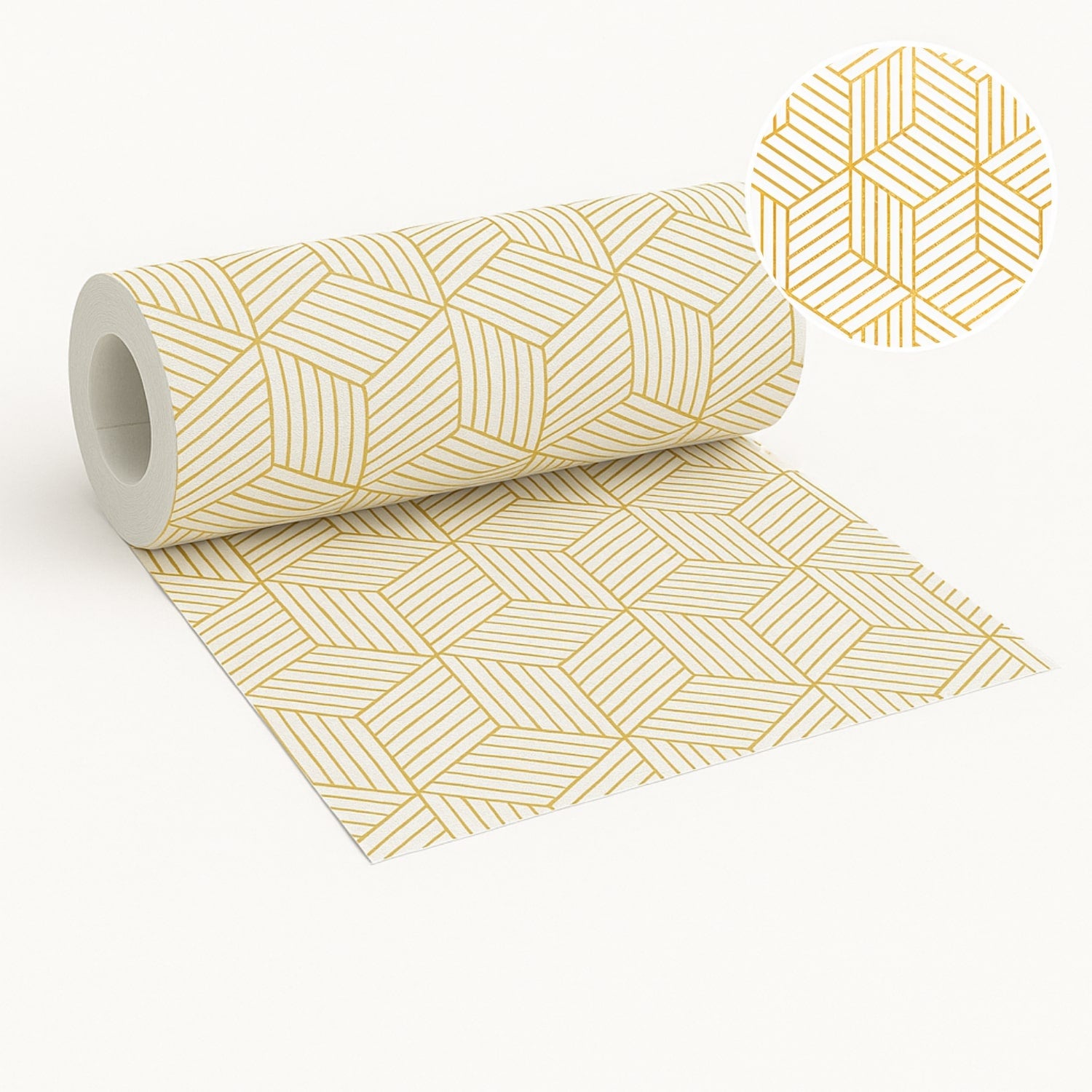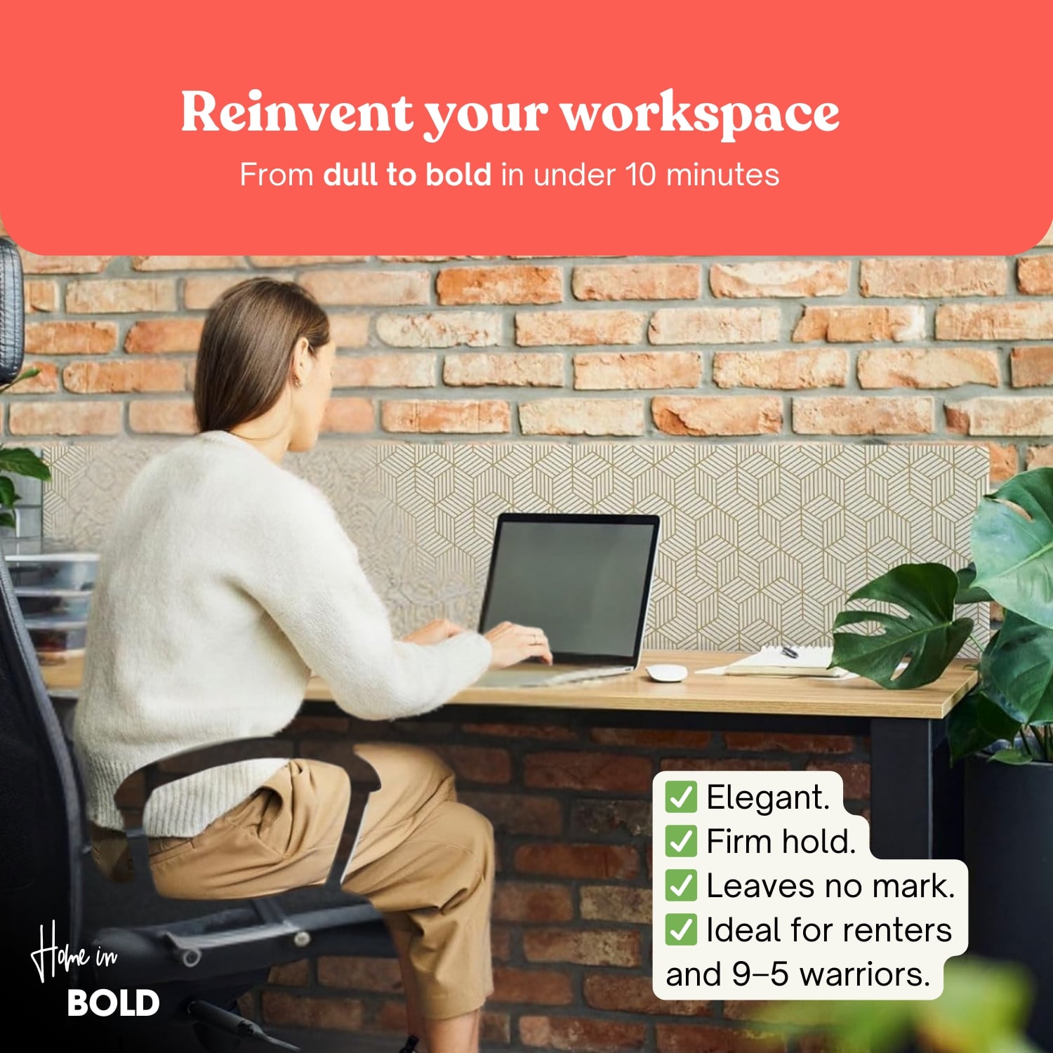 - ELEGANT GEOMETRIC CUBICLE DESIGN IDEAL FOR OFFICES: The stylish gold and white peel and stick wallpaper and geometric design gives off great aesthetics that make office one's space stand out, wall paper peel and stick modern adding a touch of sophistication to cubicle walls, cabinets, and shelving of office for a fresh, modern look.