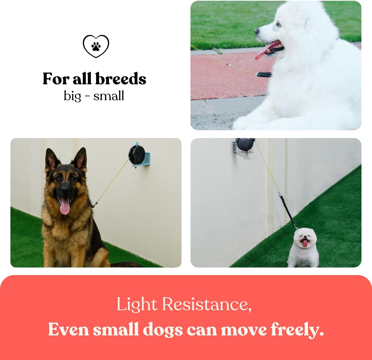 Heavy Duty Wall Mount Retractable Dog Tie out Cable for Small to Large Dogs-No Tangle Tie out Extends to 16.5 Ft