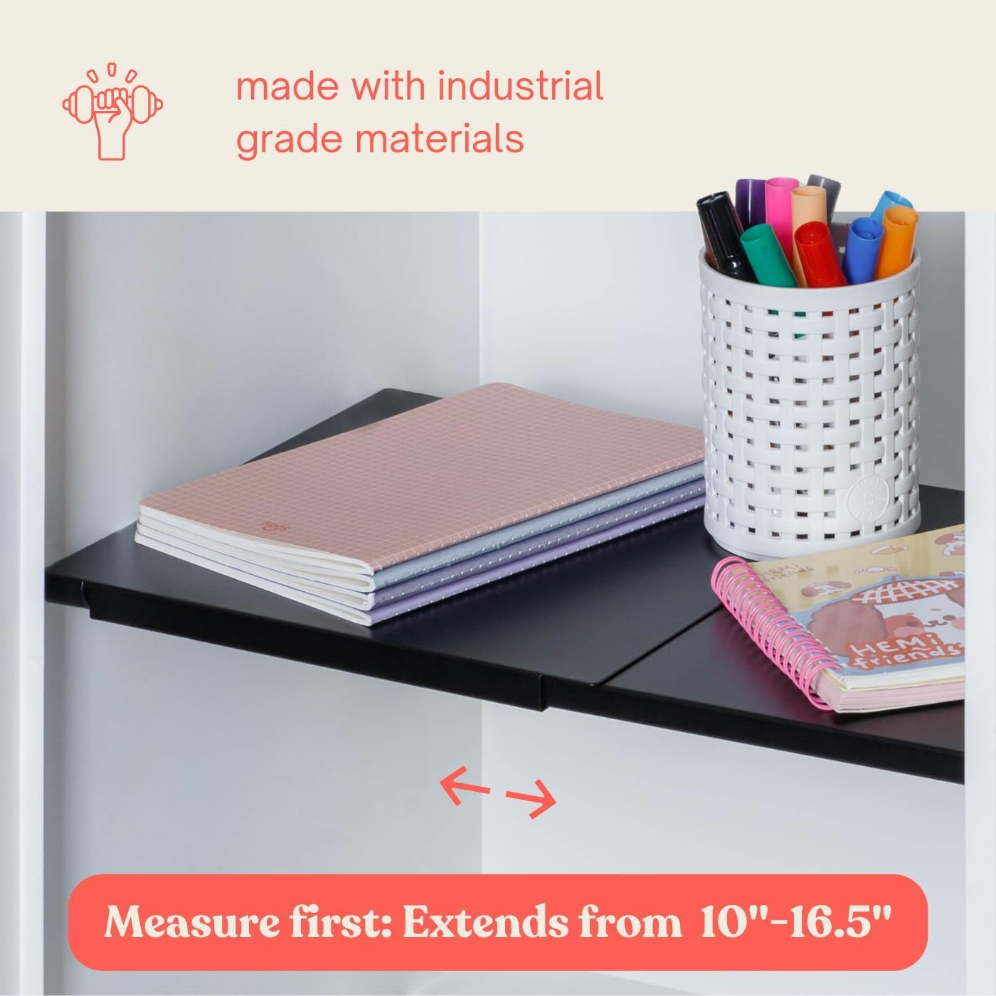 10''-16.5'' Adjustable Locker Organizer - METAL, Heavy Duty Expandable Tension Shelf Black