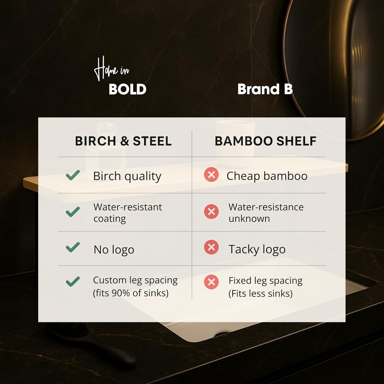 - Real Waterproof Solid Wood & Metal: Over the sink shelf kitchen crafted with a heavy-duty metal frame and a removable premium birch wood top, this bathroom sink shelf combines durability and style, kitchen sink organizer over faucet ensuring long-lasting use and a modern aesthetic that complements any room. Our wood is treated with a varnish so it does not get damaged by water. The metal feet are alos rust resistant.