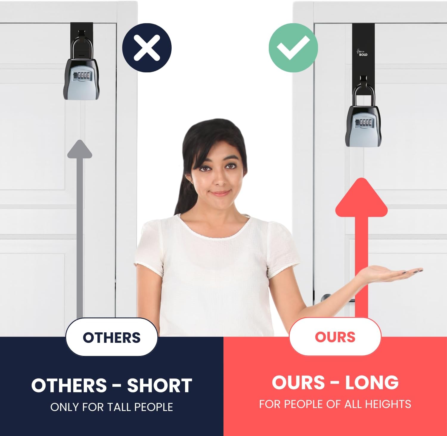 - Elderly & User-Friendly: The bracket is longer than other brackets on the market. We did this so the lockbox you'll hang will be eye-level and the lockbox lock numbers will be easy-to-read. That way, our home security lock box holder hook is elderly-friendly. With this lock holder box being longer than competitors, it is more suitable for people who aren't super tall. Made for doors with a depth of 2''!