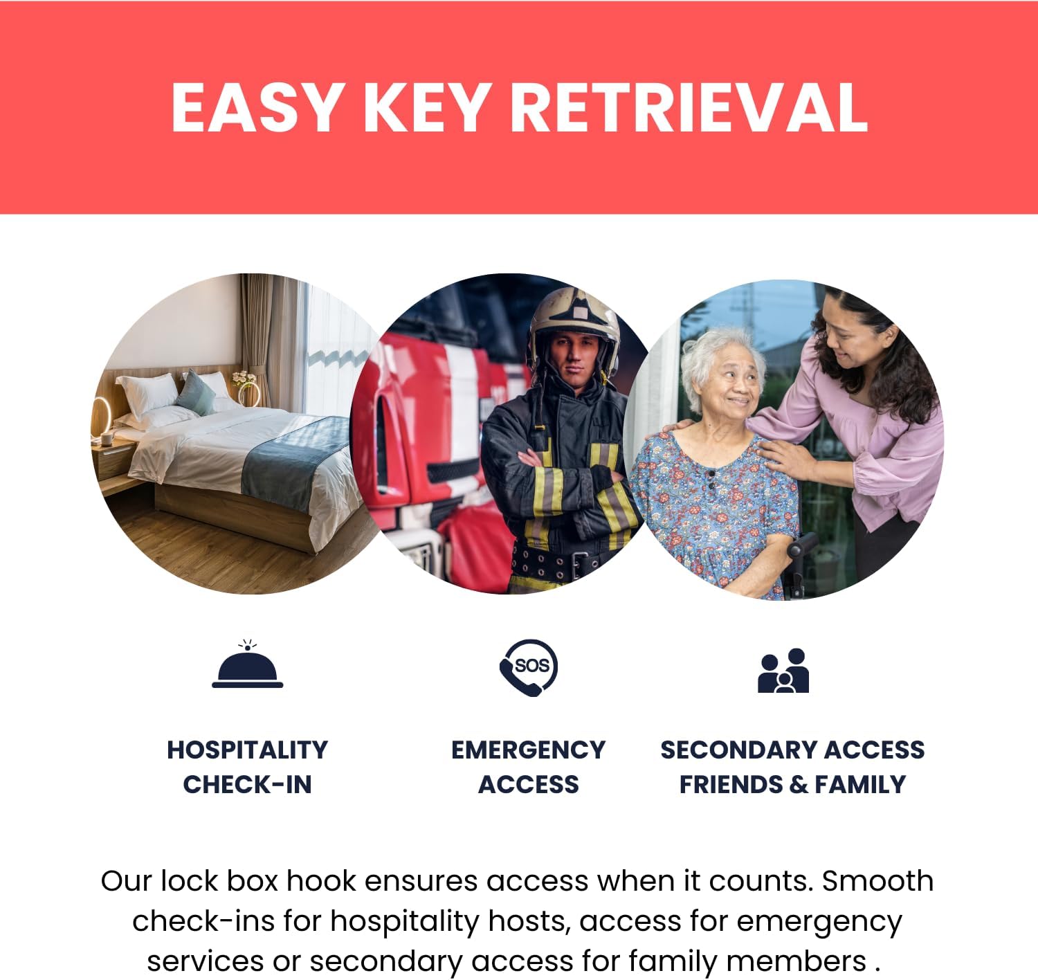 - Emergency Ready Solution: What if the person inside the house has limited mobility and emergency services need to access the house but have no key? What if you have no place to hang a key lockbox? This lockbox bracket is designed for emergency access. This heavy duty, durable lock box door mount offers quick and secure entry during urgent situations.