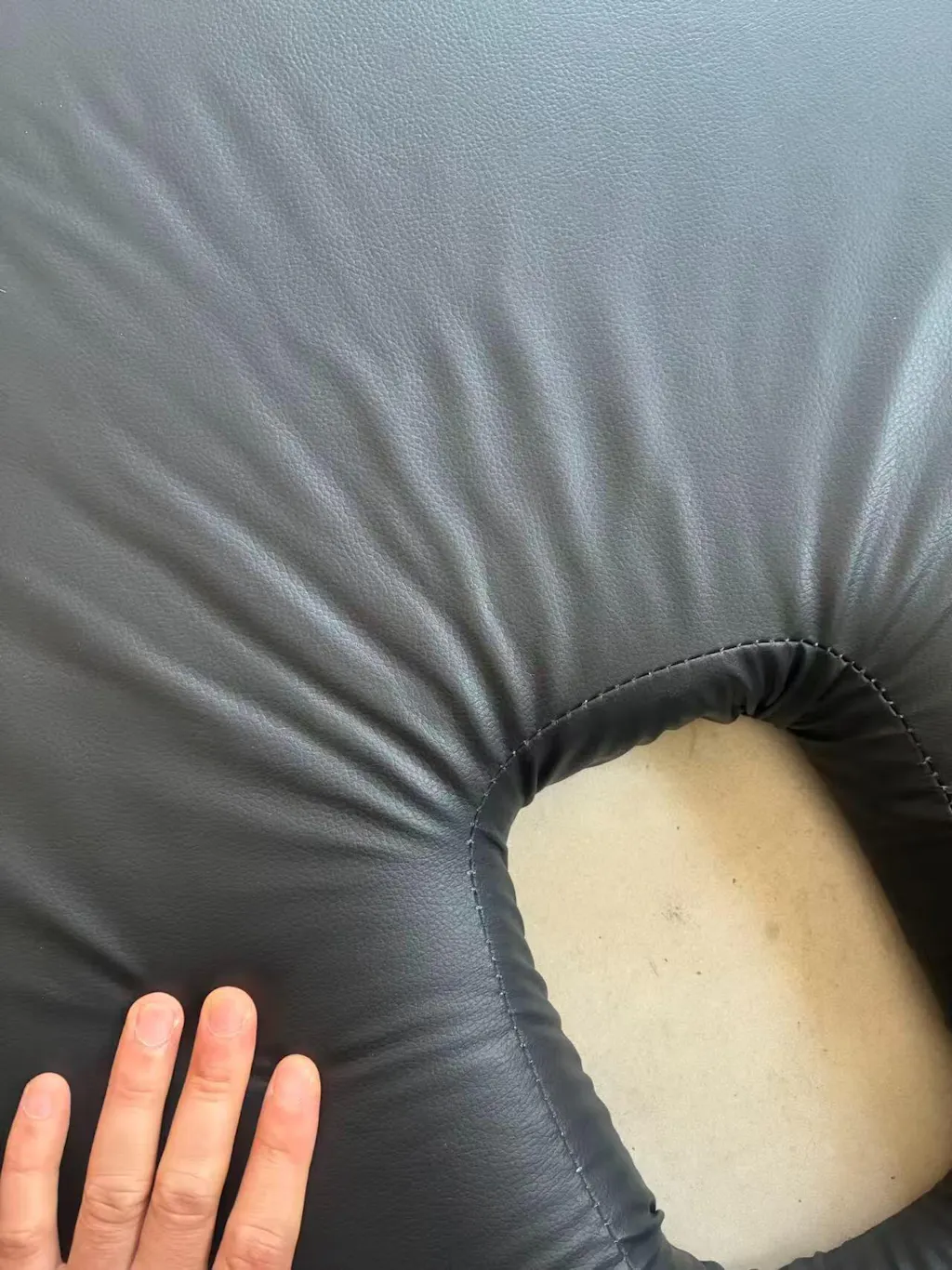 One thing, the cushion around the opening had some wrinkles/creases when it arrived (see pic). Looks like the material is just pulled tight there or something. Not a big deal, doesnt affect using it, just not perfectly smooth. It's not typical massage table leather, it feels more like a comfy sofa texture.