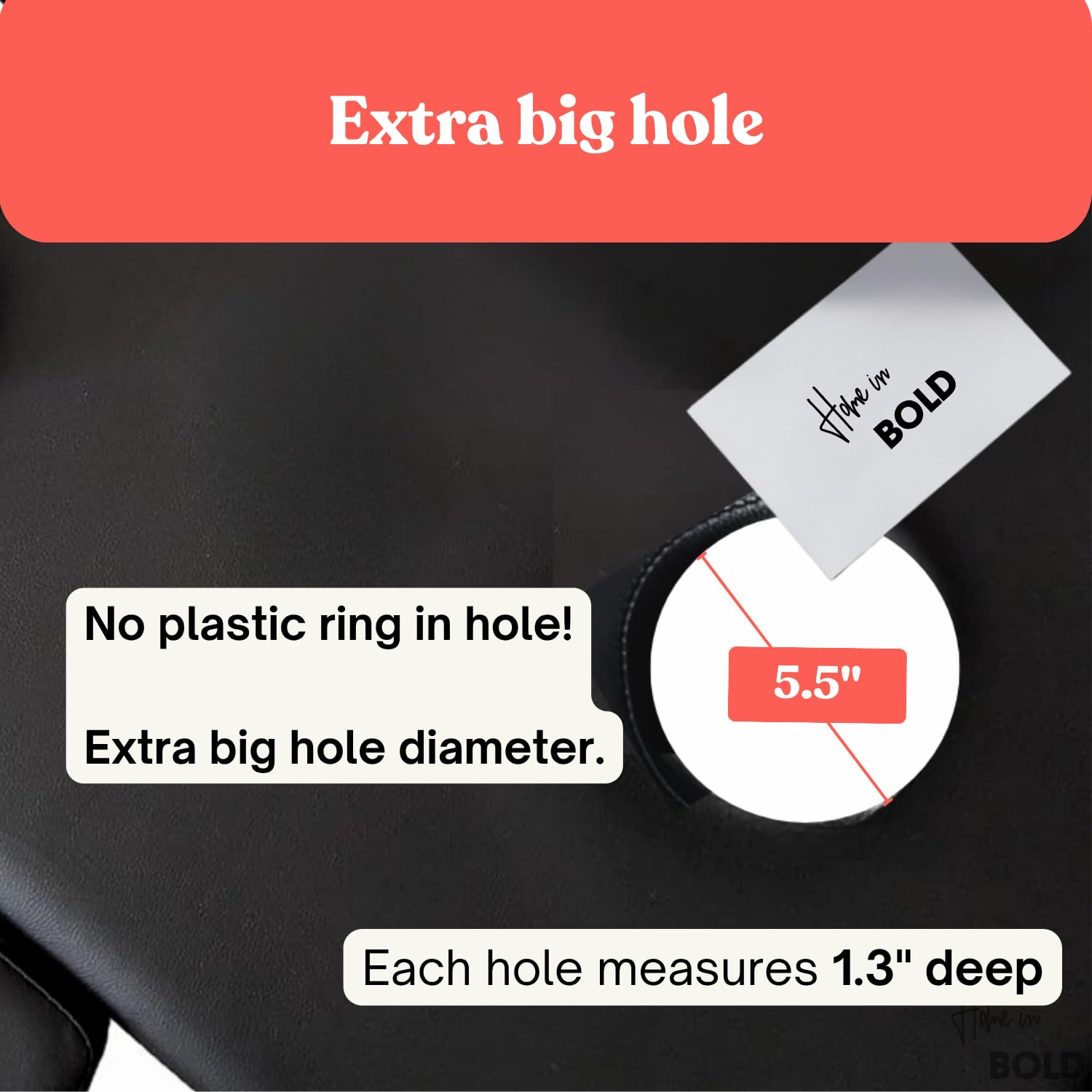 PURPOSE-BUILT GLORY HOLE DESIGN: Features two openings: a face hole (4.7 × 7.1 × 1.4 in) and a round access hole (5.5 in diameter, 1.4 in deep). Support cables underneath maintain strength while allowing space for access. -
