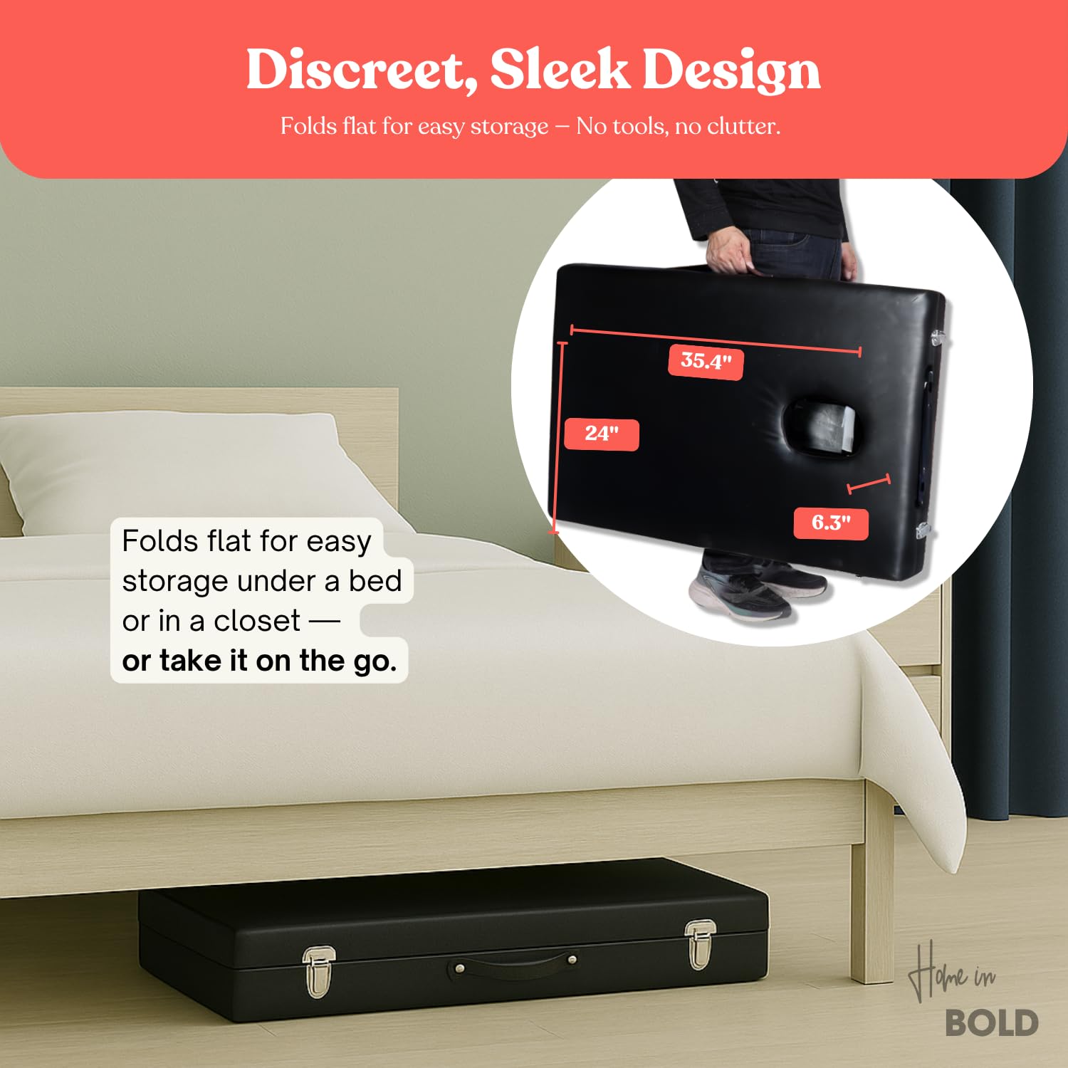 SPACIOUS YET EASY TO STORE: Measures 70.9 × 23.6 in when open. Easily folds up like a suitcase for storage under a bed or in a closet, or take it on the go. Folded size: 35.4 × 24 × 6.3 in. -