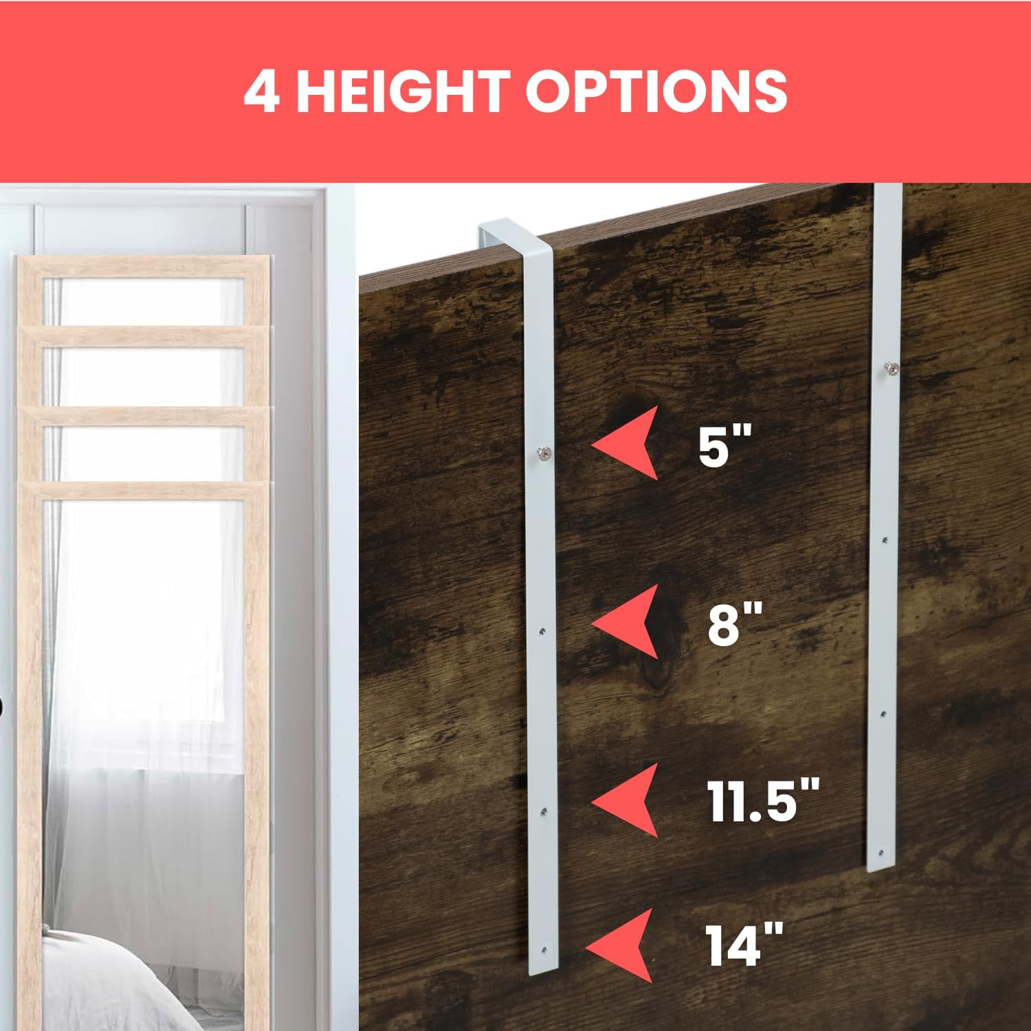 - Over-the-Door Mirror Hooks Solution: Experience the viral TikTok sensation with our 14.5-inch over door mirror hanger, designed for perfect mirror alignment and height. Fits most doors. Hooks have a depth of 1.5''.